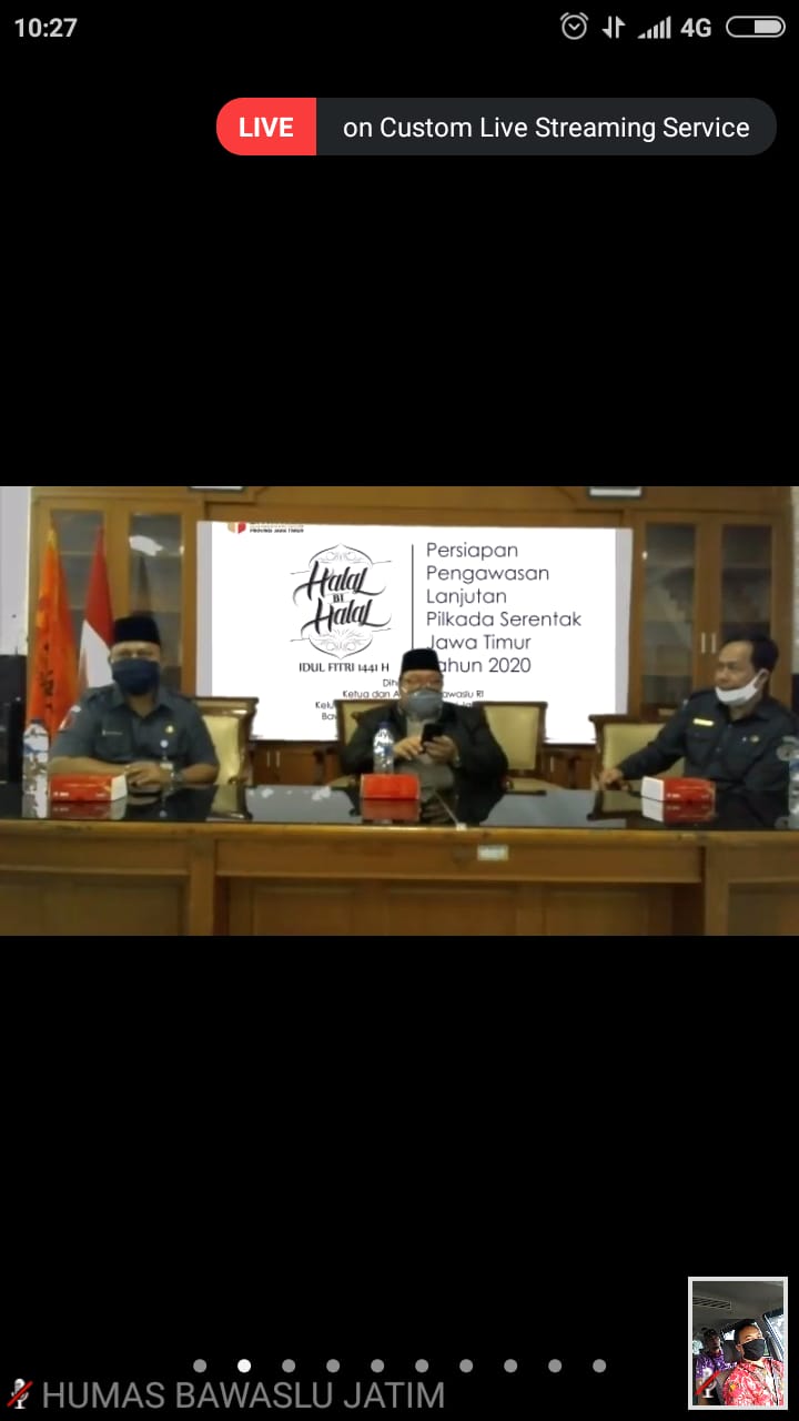 Halal bihalal Bawaslu se-Jawa Timur dengan tema persiapan pengawasan lanjutan pilkada serentak tahun 2020 digelar pada hari senin (1/6/20) bertepatan dengan peringatan hari kesaktian pancasila.