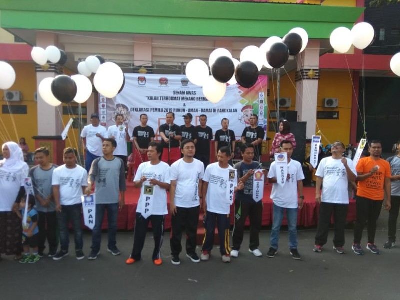 Bawaslu Bangkalan Gelar Delarasi Pemilu 2019 Damai Sambil Berolahraga Bersama Para Caleg