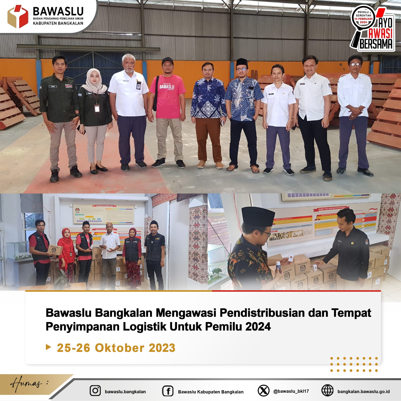 Memastikan logistik aman dan sesuai dengan kebutuhan penyelenggaran pemilu tahun 2024, Bawaslu Bangkalan melakukan pengawasan pendistribusian logistik oleh Komisi Pemilihan Umum Kabupaten Bangkalan (25-26/10).