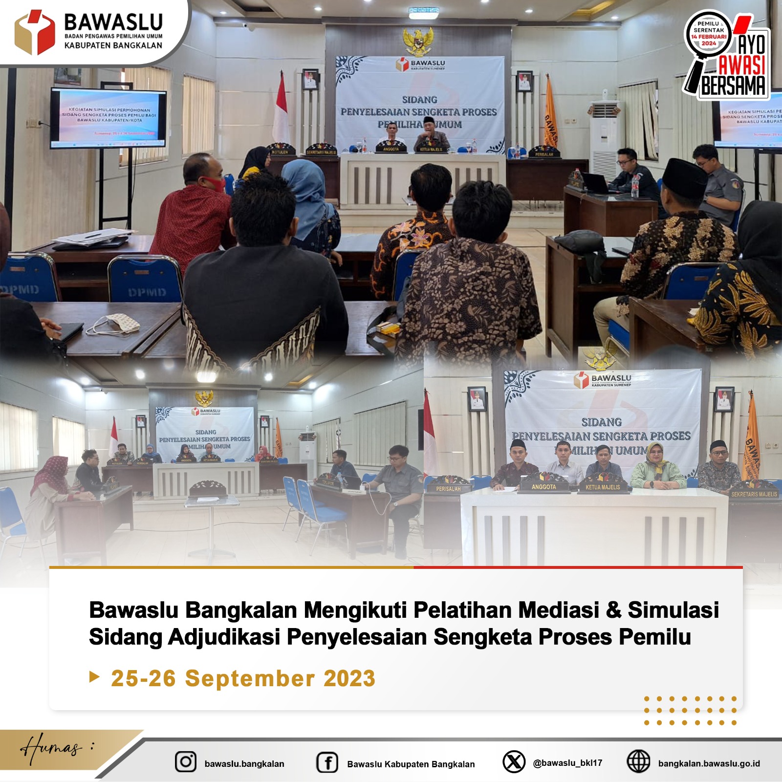 Bawaslu Bangkalan Mengikuti Pelatihan Mediasi & Simulasi Sidang Adjudikasi Penyelesaian Sengketa Proses Pemilu