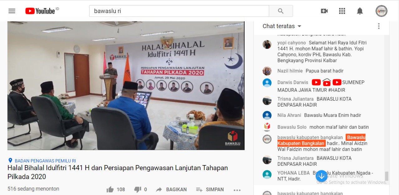 Bawaslu saat live streming halal bihalal idul fitri 1441 H