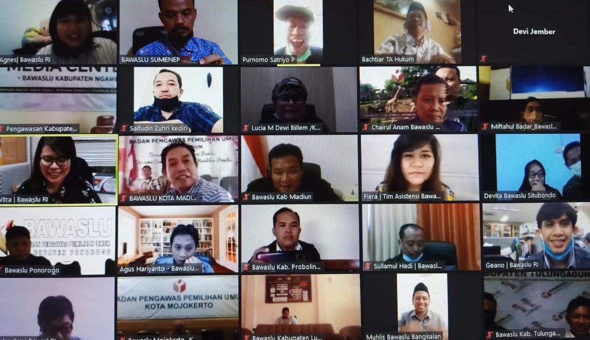 Rakor secara virtual oleh Bawaslu RI dan Bawaslu Se-Jawa Timur