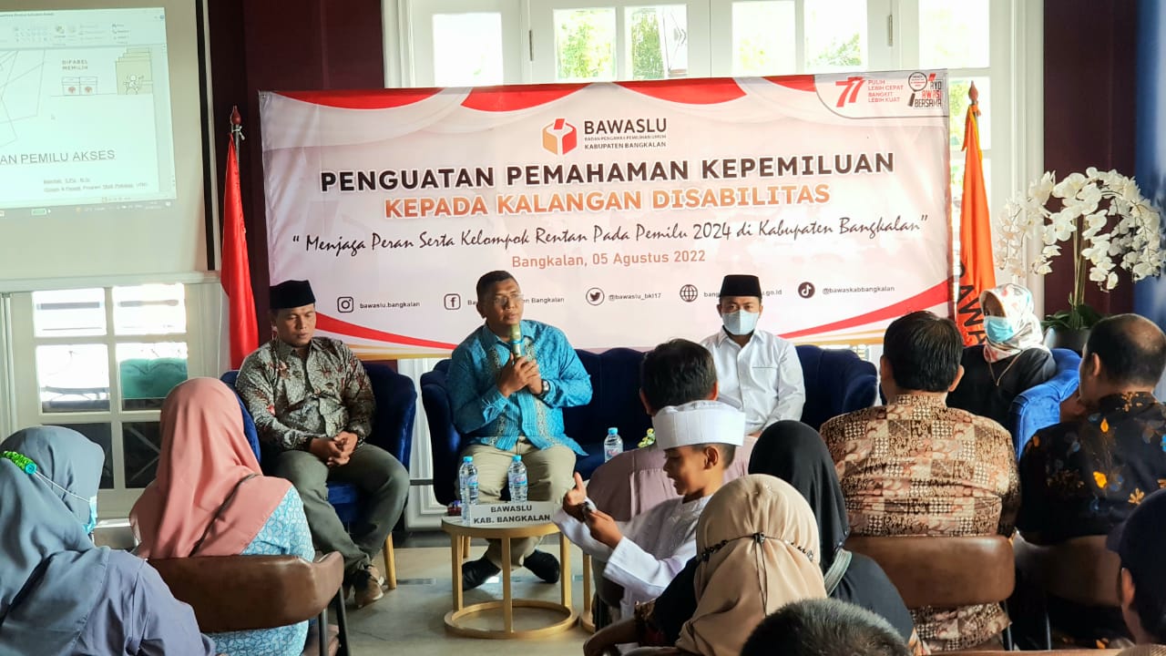 Bawaslu Kabupaten Bangkalan melaksanakan penguatan pemahaman kepemiluan bersama kelompok disabilitas, Jum'at 5 Oktober 2022 di Cafe Bima N Zain.