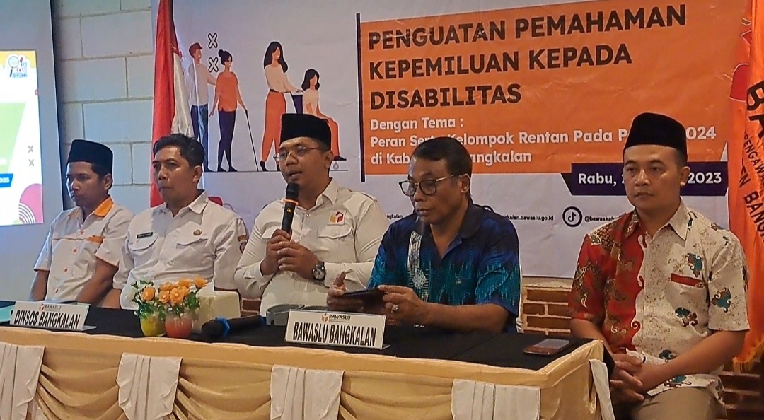 Menggelar acara penguatan pemahaman kepemiluan kepada kelompok disabilitas, Ahmad Mustain Saleh ketua Bawaslu Bangkalan menyampaikan tentang pentingnya peran serta kelompok rentan pada pemilu tahun 2024.