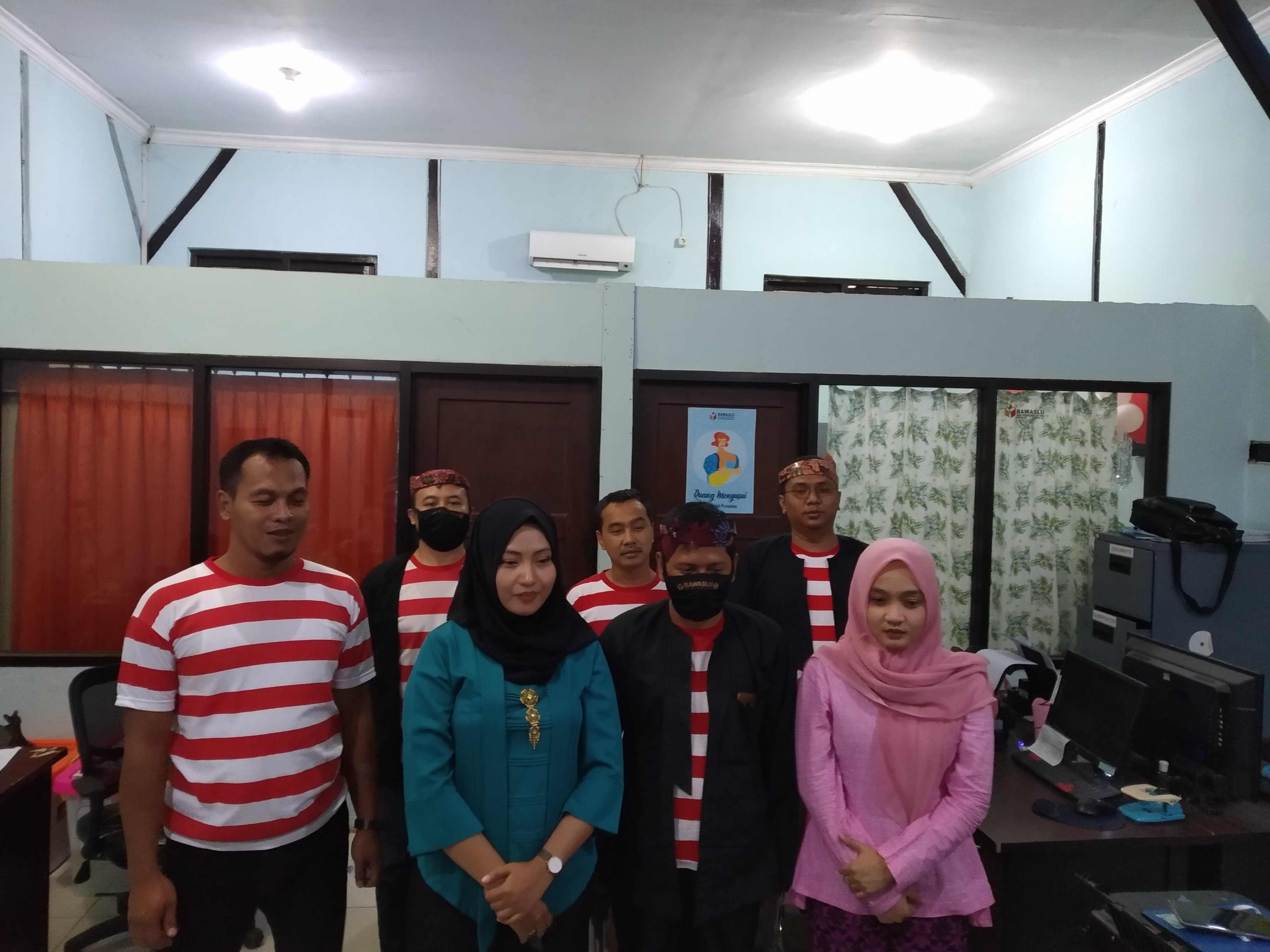 anggota Bawaslu Bangkalan dan staf saat mengikuti vidcon launching pojok laktasi Bawaslu se-Jawa Timur