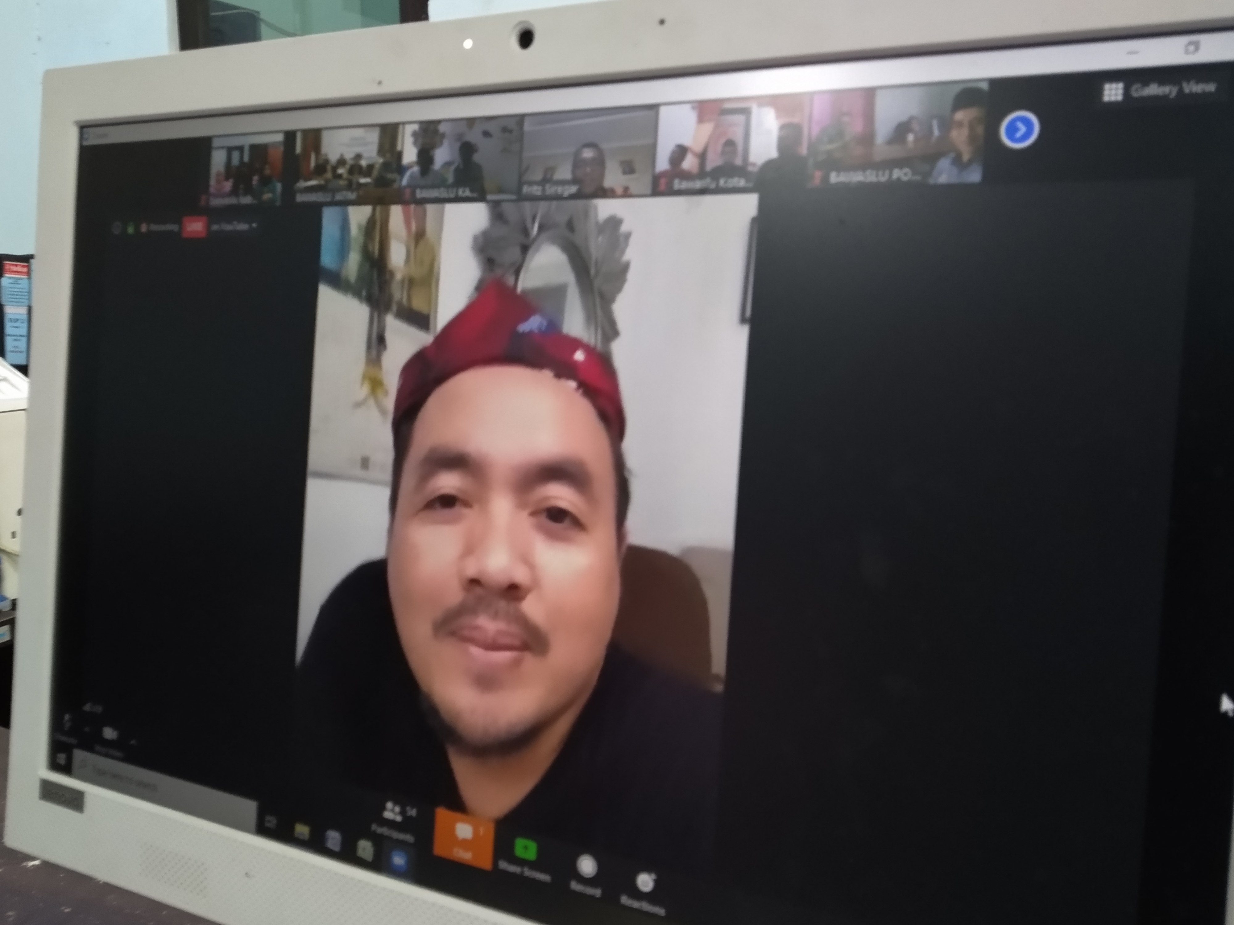 Moh. afifuddin anggota Bawaslu RI saat mengikuti launching pojok laktasi via aplikasi zoom
