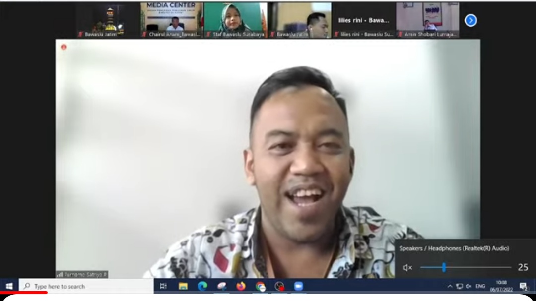 Bawaslu Provinsi Jawa Timur hari ini kembali menyelenggarakan rutinitas Diskusi membaca Undang-Undang Nomor 7 Tahun 2017 tentang pemilu. Diskusi ini dalam rangka persiapan pemilu tahun 2024 yang pada saat ini tahapannya sedang berlangsung. Diskusi Seri-2 yang diselenggarakan secara daring melalui media zoom meeting mengangkat tema pendaftaran dan verifikasi partai politik (06/07/22).