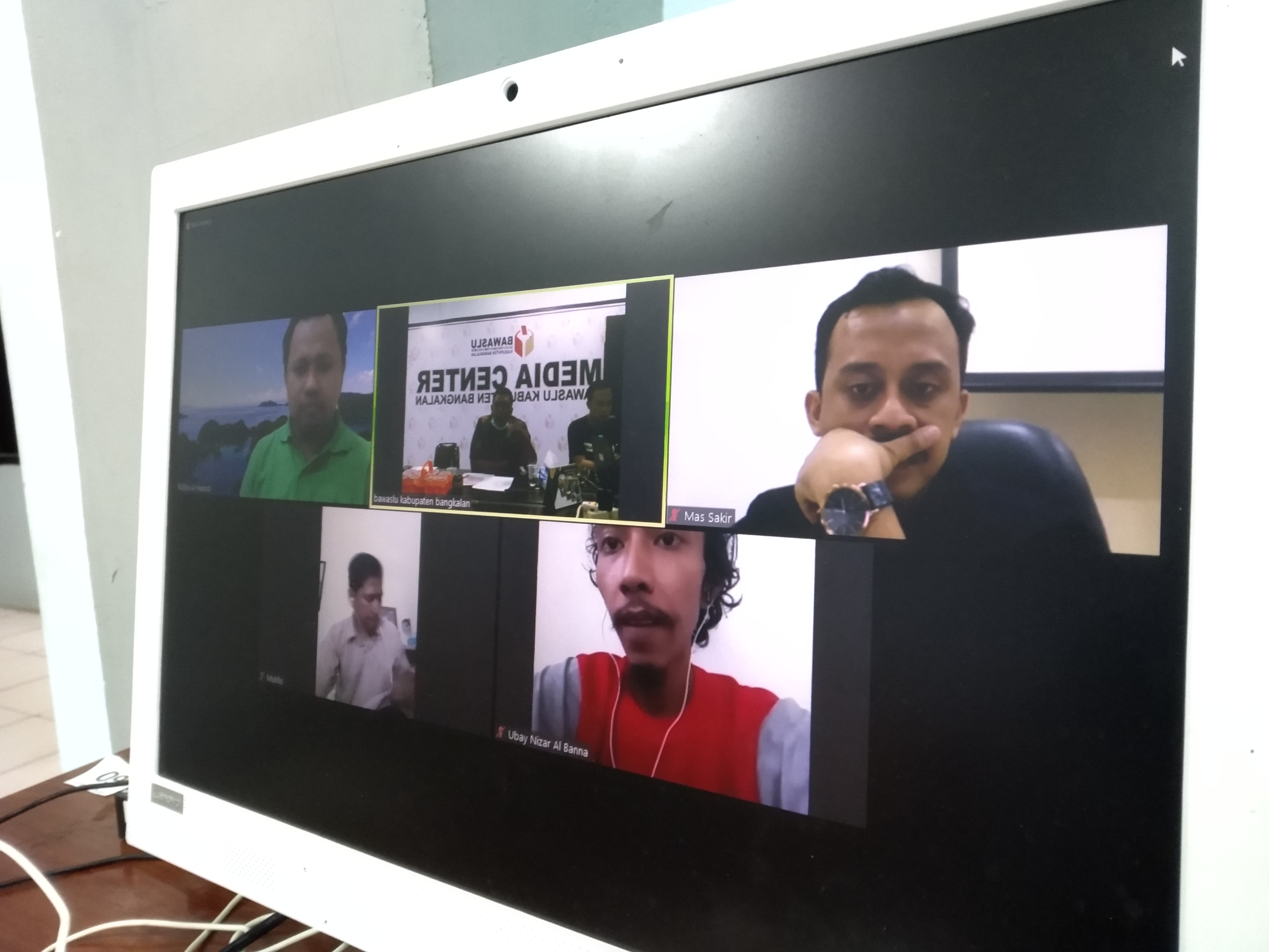 Anggota Bawaslu Bangkalan saat video conference dengan tim riset Universitas Muhammadiyah Yogyakarta