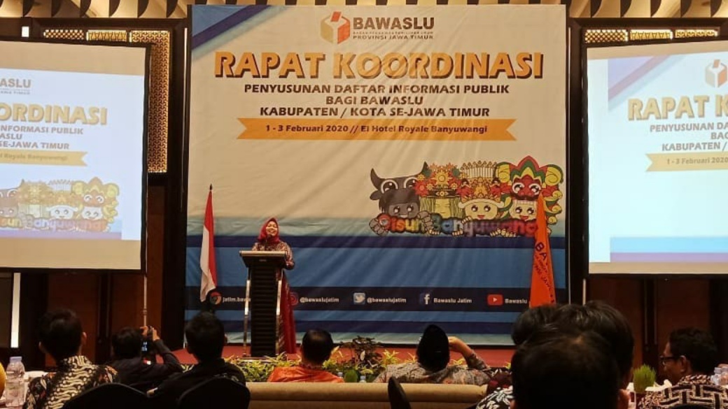 bangkalan.bawaslu.go.id - Upaya mendorong keterbukaan informasi publik di lembaga Bawaslu, Nur Elya Angraini (Anggota Bawaslu Jawa timur) mengajak kepada peserta rapat koordinasi untuk menshare setiap kegiatan yang dilaksanakan, ungkapnya di depan peserta rakoor yang bertempat di hotel el Royal Banyuwangi pada tanggal 1 Februari 2020.