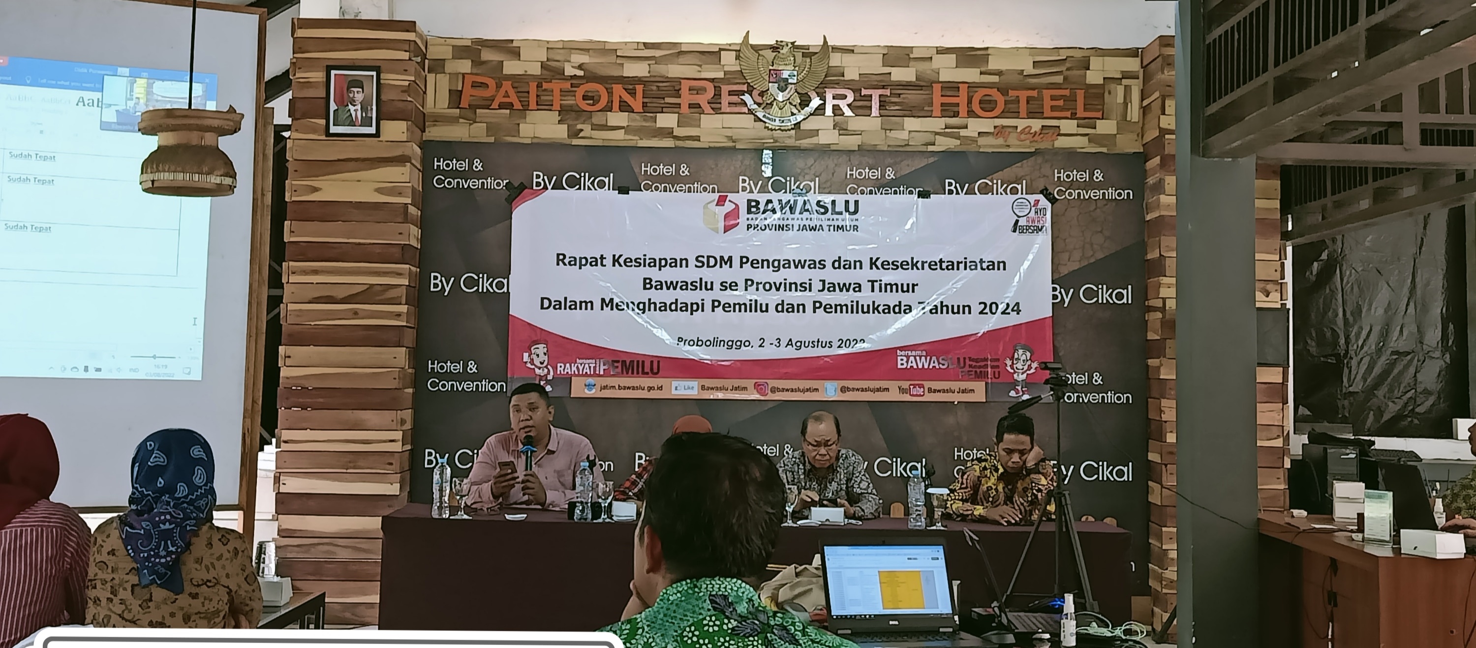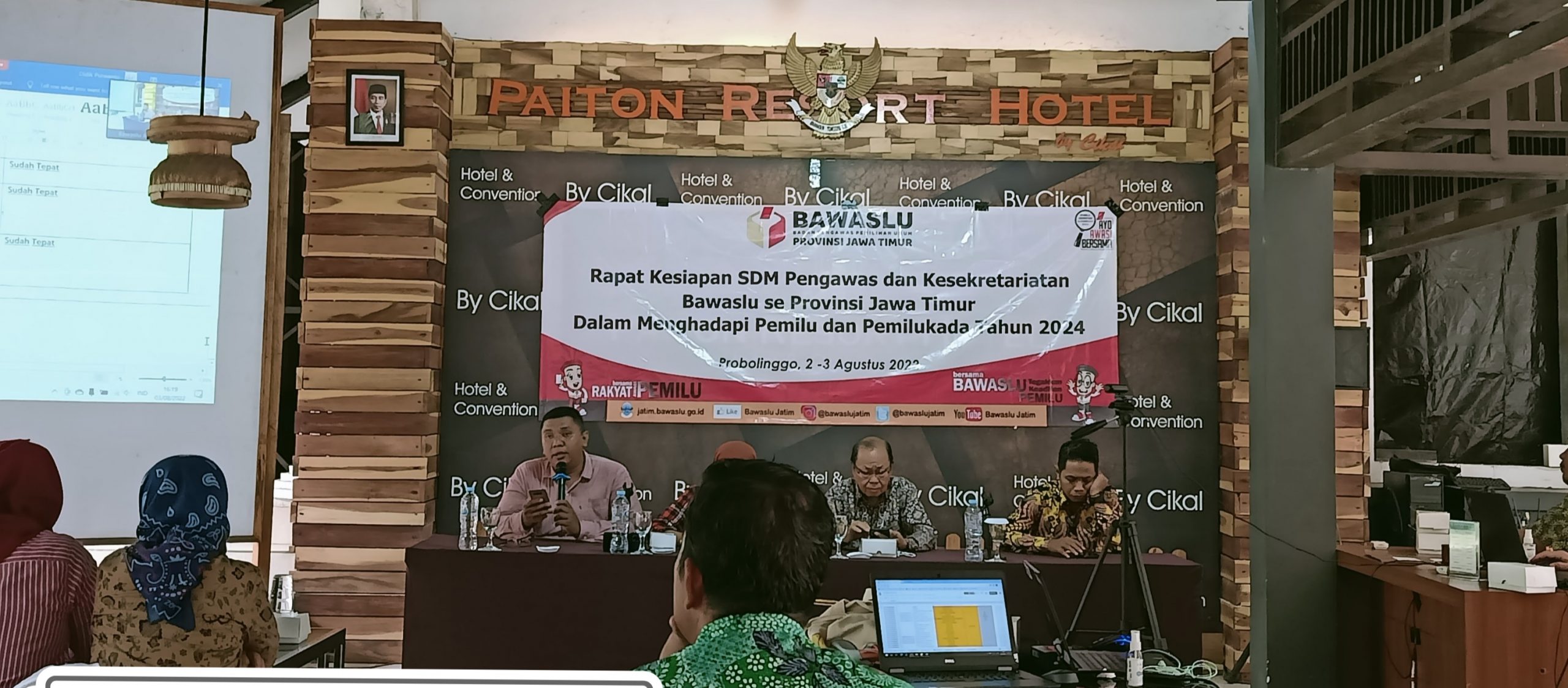 Ketua Bawaslu Bangkalan Ahmad Mustain Saleh menghadiri rapat koordinasi tentang kesiapan Sumber Daya Manusia (SDM) Pengawas yang diselenggarakan Bawaslu Provinsi Jawa Timur, di Probolinggo Selasa hingga Rabu (2-3/08).