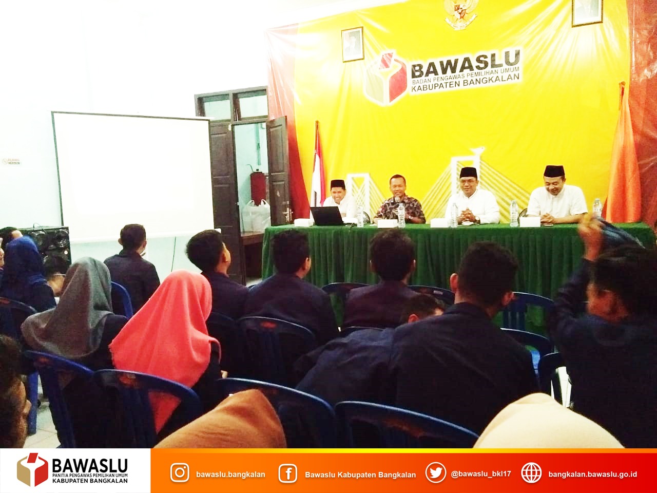Muhlis SH, MH kordiv Hukum, Data dan Informasi Bawaslu Bangkalan saat menjadi pembicara menjelaskan terkait proses pengawasan dan penindakan pelanggaran selama proses pemilu tahun 2019.