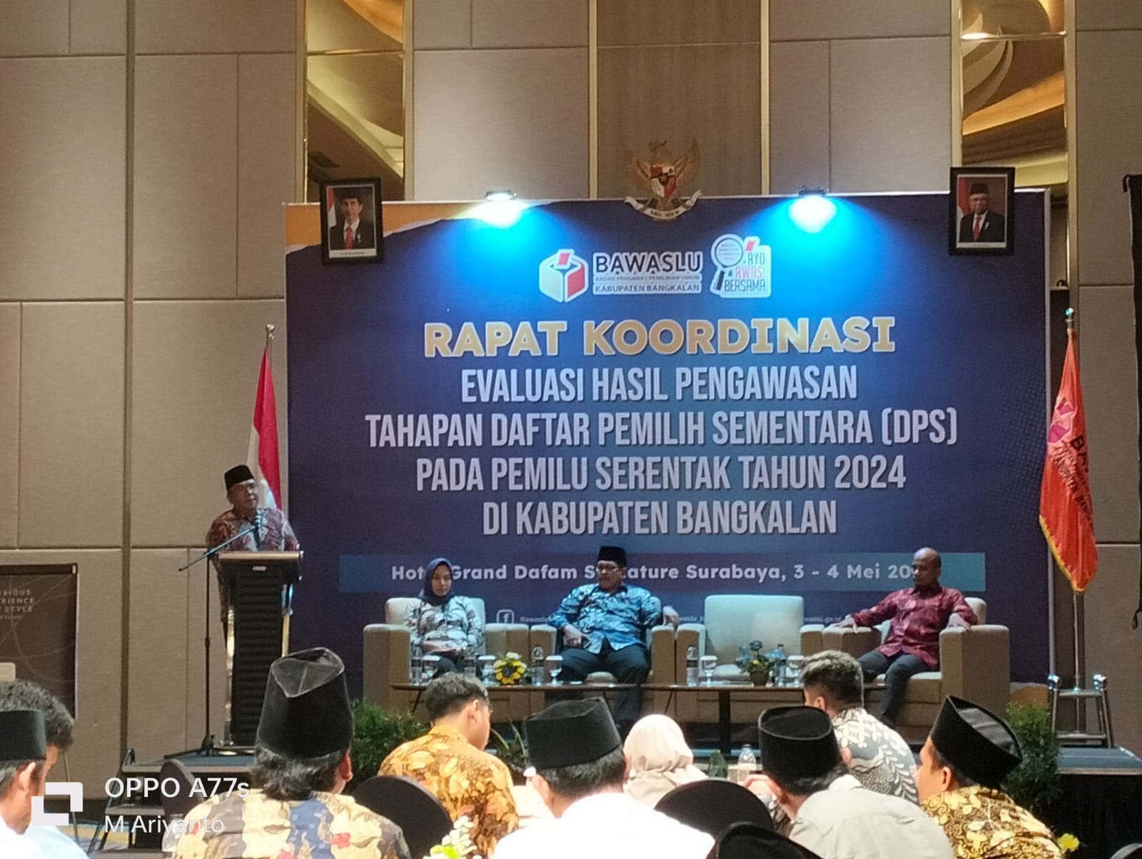 "Beberapa temuan Panwaslu Kecamatan dan Panwaslu Kelurahan atau desa, masih ditemukan data ganda yang nantinya akan dikirim ke KPU Bangkalan sebagai bahan masukan," ujar Ahmad Mustain Saleh saat rapat koordinasi dengan Panwaslu Kecamatan (3-4/5/23) di Surabaya.