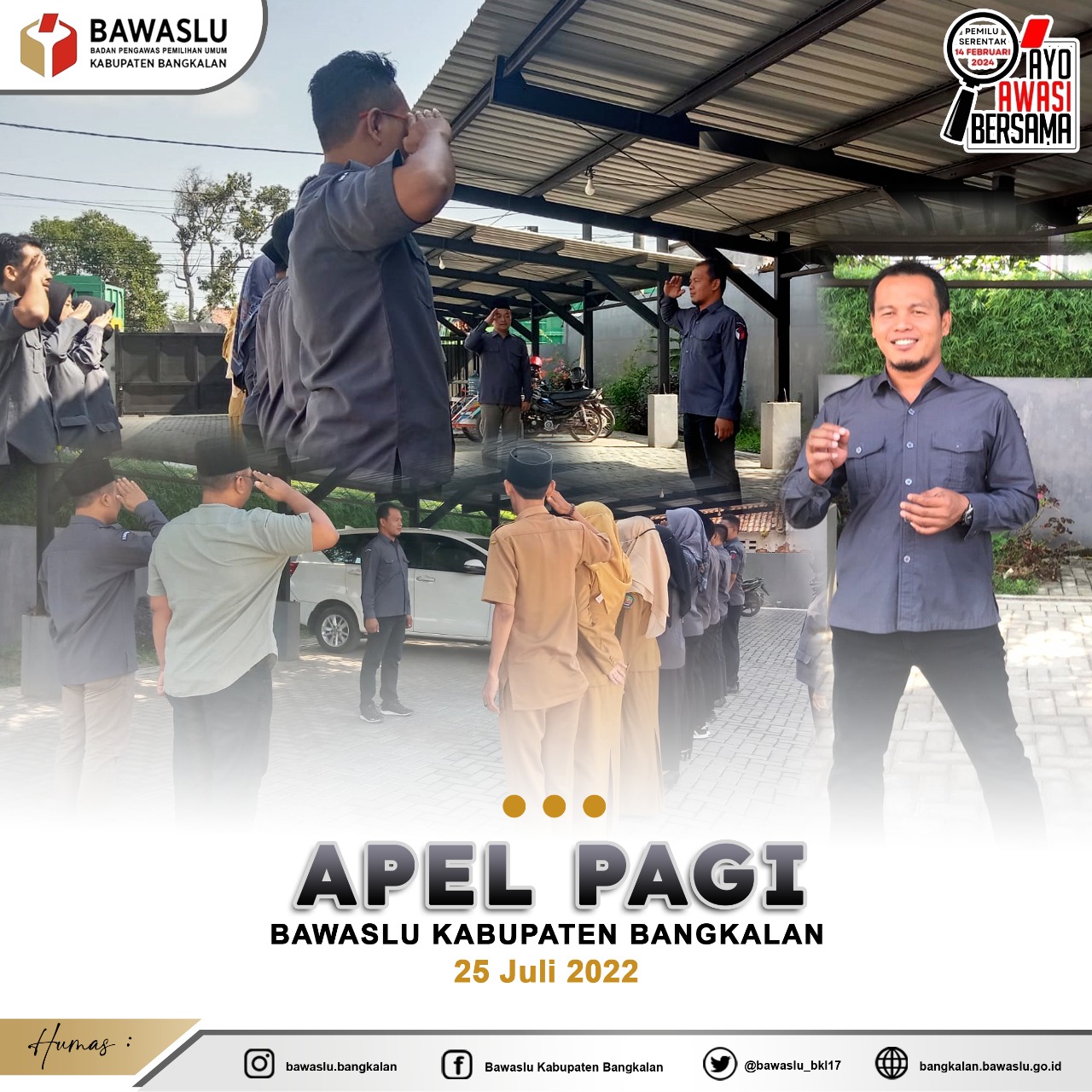 Abdul Aziz koordinator divisi pengawasan Bawaslu Kabupaten Bangkalan mengingatkan jajarannya menjelang pengawasan pendaftaran dan verifikasi partai politik peserta pemilu tahun 2024, hal tersebut ia sampaikan saat memimpin apel pagi, Senin 25 Juli 2022.