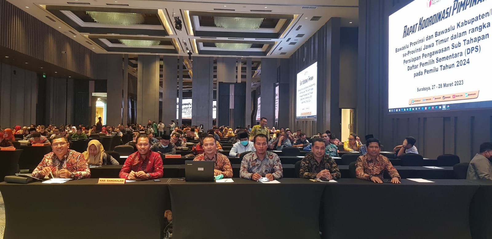 Menjelang Pengawasan Daftar Pemilih Sementara (DPS), Ketua dan Anggota Bawaslu Bangkalan Menghadiri Rapim
