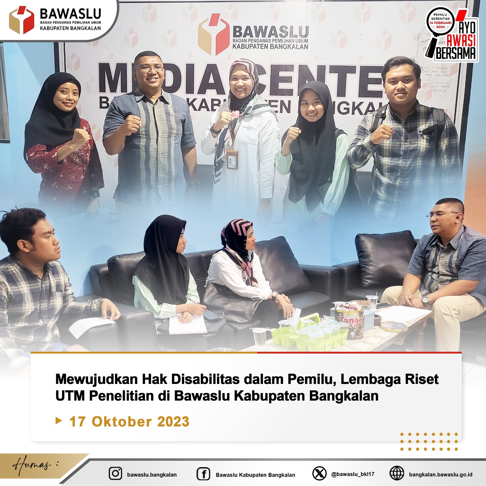 Mewujudkan Hak Disabilitas dalam Pemilu, Lembaga Riset UTM Melakukan Penelitian di Bawaslu Kabupaten Bangkalan