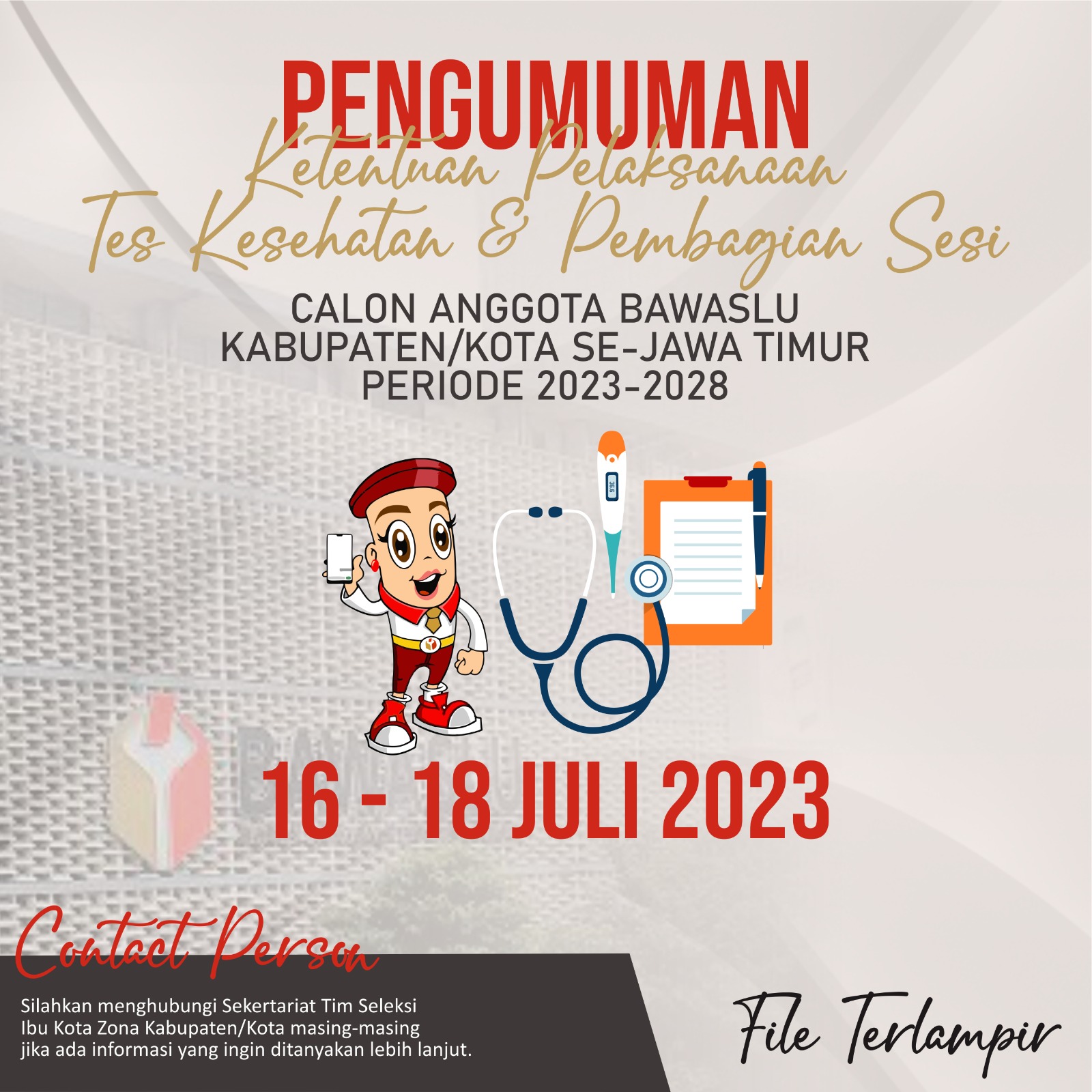 PENGUMUMAN KETENTUAN PELAKSANAAN TES KESEHATAN DAN PEMBAGIAN SESI CALON ANGGOTA BAWASLU KABUPATEN/KOTA MASA JABATAN 2023 – 2028