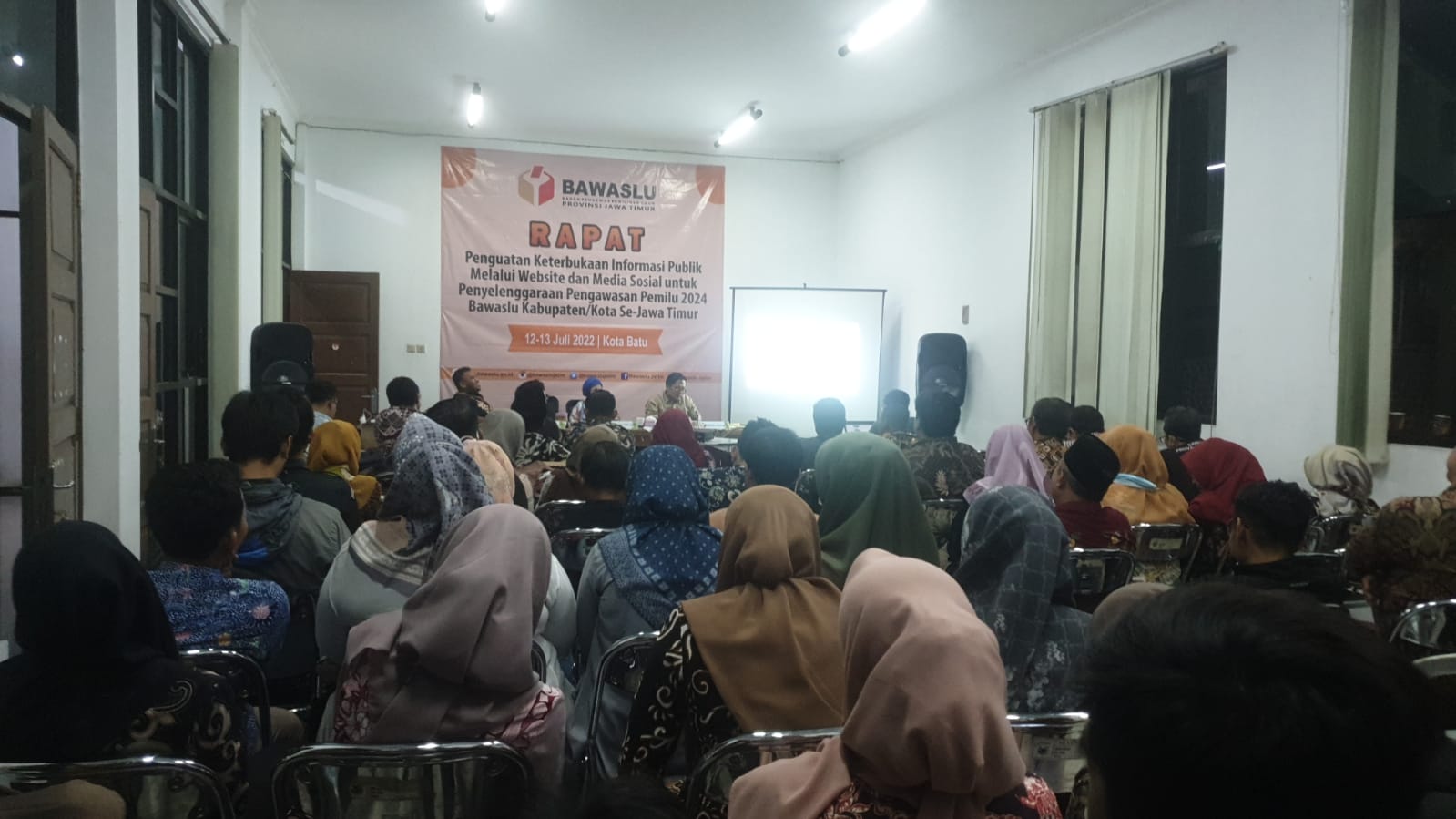 Penguatan keterbukaan informasi publik melalui website dan media sosial untuk penyelenggaraan pengawasan pemilu 2024 menjadi tema rapat koordinasi kehumasan yang diselenggarakan oleh Bawaslu Provinsi Jawa Timur, Selasa (12/07/22) di kantor Bawaslu Kota Batu.