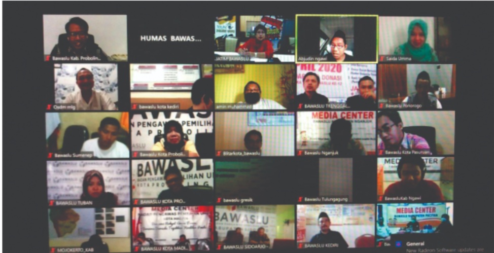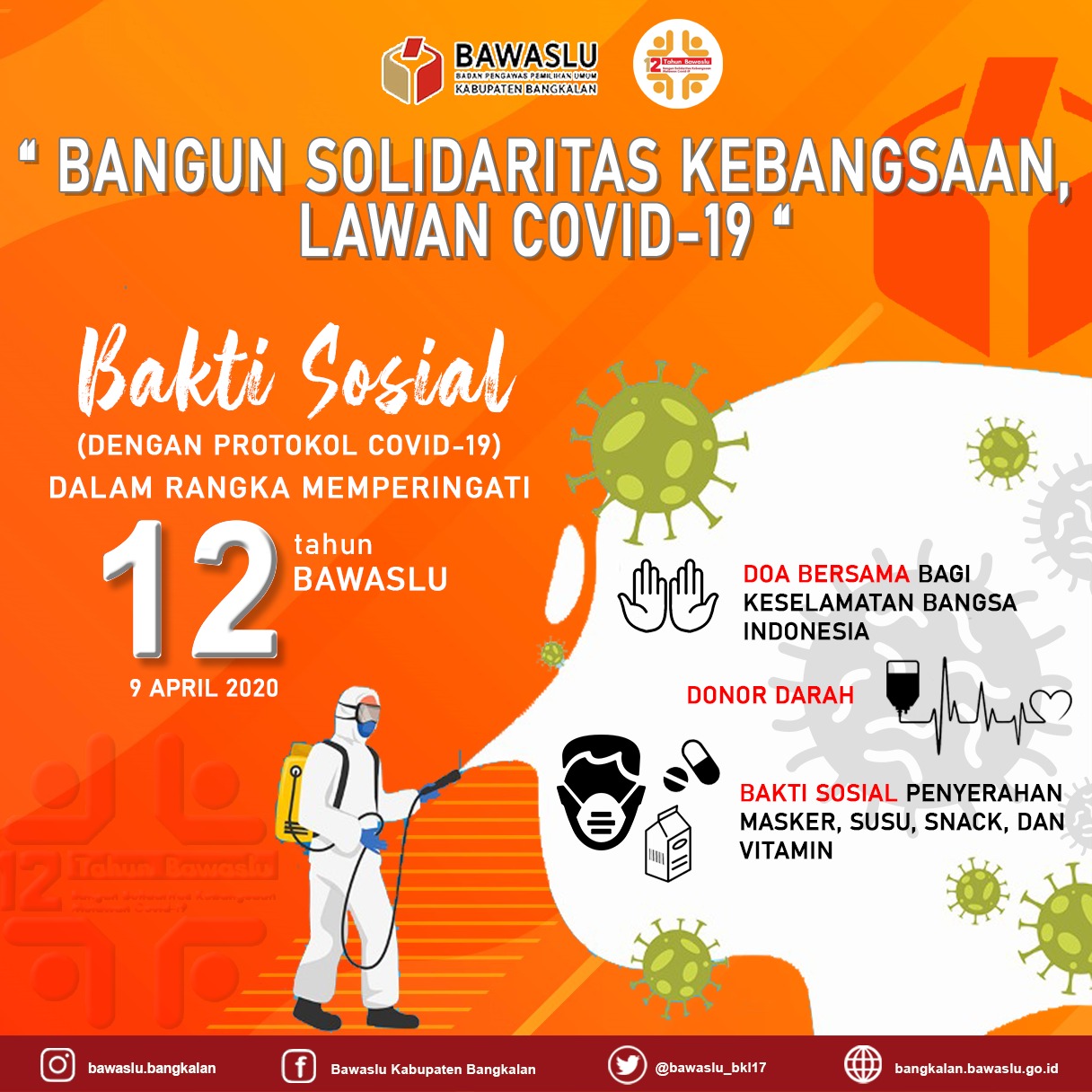 Bangkalan, Bangun Solidaritas Kebangsaan Melawan Covid-19 merupakan tema yang diangkat oleh Bawaslu dalam rangka memperingati Hari Ulang Tahun (HUT) yang ke 12. Melalui saluran video confrence ketua Bawaslu Jawa Timur Moh Amin menghimbau kepada Bawaslu Kabupaten/Kota Se-jawa Timur untuk melakukan Kegiatan yang bermanfaat ditengah mewabahnya covid-19 di masyarakat.