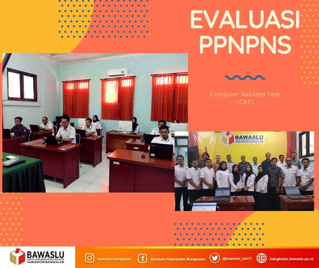Pelaksanaan evaluasi di lingkungan Bawaslu Kabupaten Bangkalan diikuti oleh 10 orang yang terdiri dari Tenaga Pendukung Administrasi dan Tenaga Pelaksana Teknis. Tes evaluasi yang berbasis online tersebut dilaksanakan di lingkungan sekretariat Bawaslu Kabupaten Bangkalan.