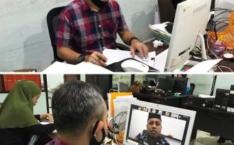 Komisioner Bawaslu Bangkalan (Buyung Pambudi) dan staf Saat mengikuti sosialisasi Perbawaslu dan perki tentang keterbukaan informasi publik