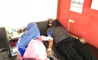 Komisioner Bawaslu Bangkalan Abdul Aziz saat donor darah dikantor PMI Bangkalan