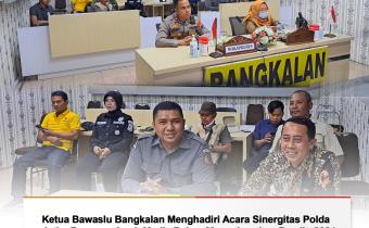 Ketua Bawaslu Bangkalan Ahmad Mustain Saleh menghadiri acara sinergitas Polisi Daerah Jawa Timur bersama awak media dalam mensukseskan pemilu 2024 secara daring,