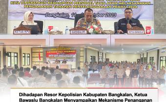 Ketua Bawaslu Bangkalan Ahmad Mustain Saleh menjelaskan mekanisme dugaan tindak pidana pemilu menghadapi pemilu tahun 2024, Kamis 12 Oktober 2023 di Mapolres Ban