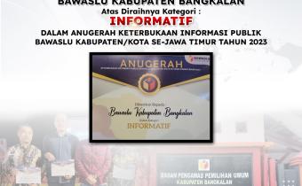 Bawaslu Kabupaten Bangkalan kembali mendapatkan anugerah predikat badan publik Informatif pada malam penganugrahan yang diselenggarakan oleh Bawaslu Provinsi Jawa Timur, Sabtu 22/07/23 di Pasuruan