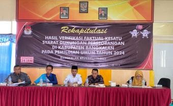 Ketua dan Anggota Bawaslu Kabupaten Bangkalan menghadiri rekapitulasi hasil verifikasi faktual kesatu syarat dukungan perseorangan di Kabupaten Bangkalan pada Pemilihan Umum Tahun 2024.