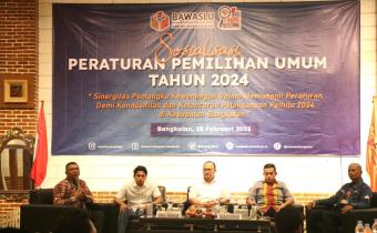 Bawaslu Bangkalan gelar sosialisasi peraturan pemilu tahun 2024 dengan tema sinergitas pemangku kewenangan dalam memahami peraturan demi kondusifitas dan kelancaran pelaksanaan pemilu tahun 2024 di Kabupaten Bangkal