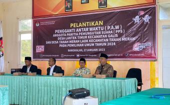 Ketua Bawaslu Kabupaten Bangkalan Ahmad Mustain Saleh menghadiri pelantikan Pengganti Antar Waktu (PAW) Panitia Pemungutan Suara (PPS) Desa Lantek Timur Kecamatan Galis dan Desa Tanah Merah Laok Kecamatan Tanah Mera