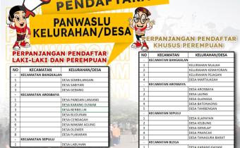 Berdasarkan hasil penelitian adminstrasi terdapat beberapa kelurahan dan desa yang kurang kouta pelamar dan kouta keterwakilan perempuan, Bawaslu Kabupaten Bangkalan perpanjang masa pendaftaran di lima kecamat