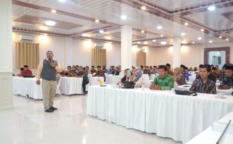 Ketua Bawaslu Kabupaten Bangkalan Ahmad Mustain Saleh menyampaikan tugas dan kewenangan Bawaslu dalam pemilu tahun 2024 dihadapan anggota Panitia Pemilihan Kecamatan (PPK) se-Kabupaten Bangkalan, di Hotel Rose Bangk