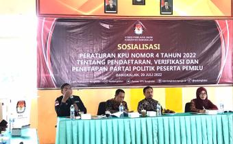 Hari pertama pendaftaran Partai Politik (Parpol) calon peserta Pemilihan Umum 2024, Anggota Bawaslu Kabupaten Bangkalan Buyung Pambudi koordinasi dengan K