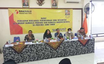 Ketua Bawaslu Kabupaten Bangkalan Ahmad Mustain Saleh menghadiri rapat koordinasi persiapan deklarasi pencanangan zona integritas di lingkungan Bawaslu Provinsi dan Bawaslu Kabupaten/Kota se-provinsi Jawa Timur, Kam
