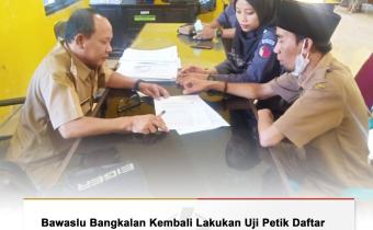 Bawaslu Kabupaten Bangkalan kembali melaksanakan uji petik Dafta Pemilih Berkelanjutan (DPB) di kecamatan Kwanyar, Senin (27/06/22). Uji petik ini dalam rangka memastikan data pemilih terdata dengan baik.